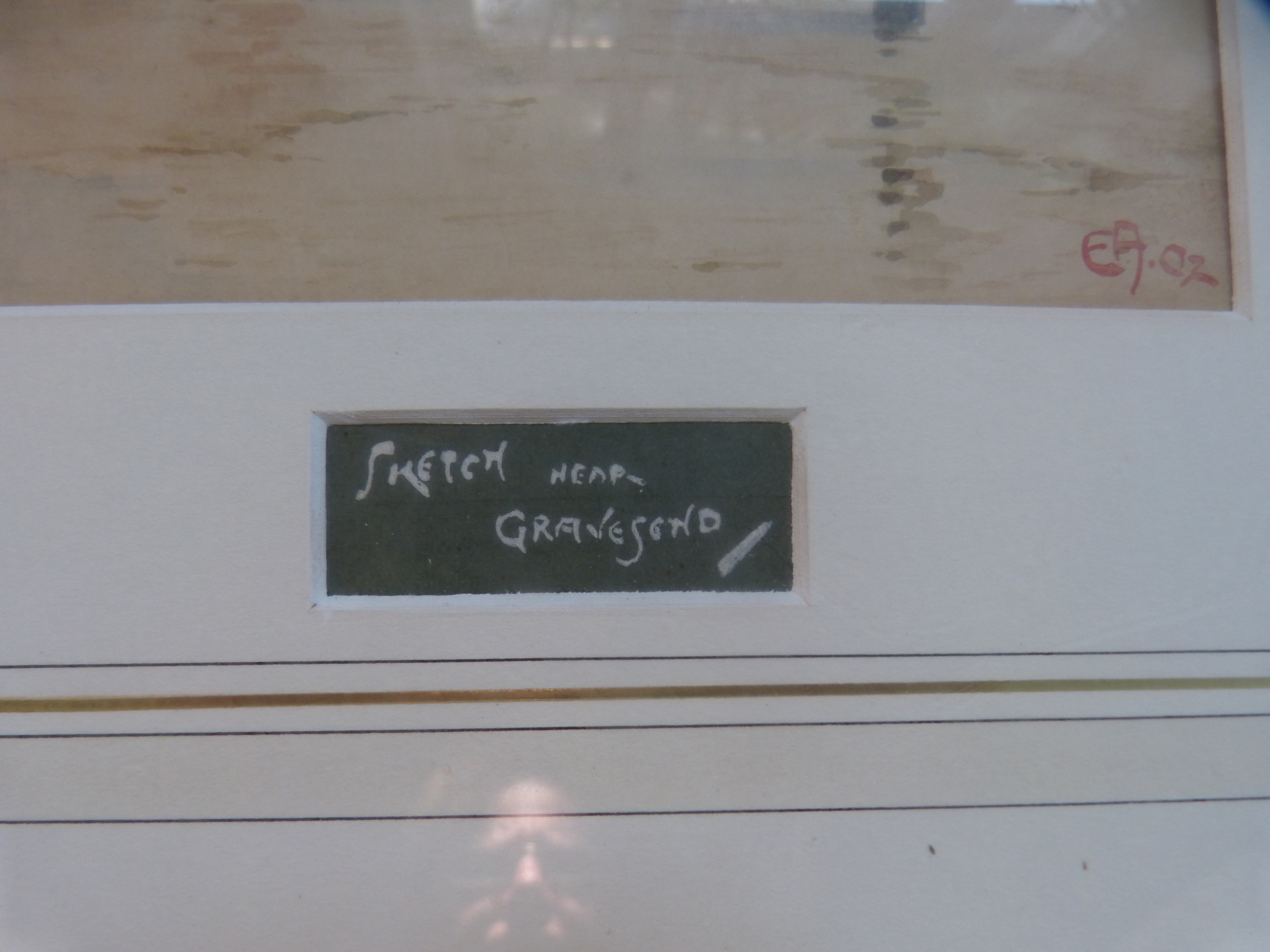 Oil Colour Painting by E:A. : Old Sailing Ship near Gravesend !